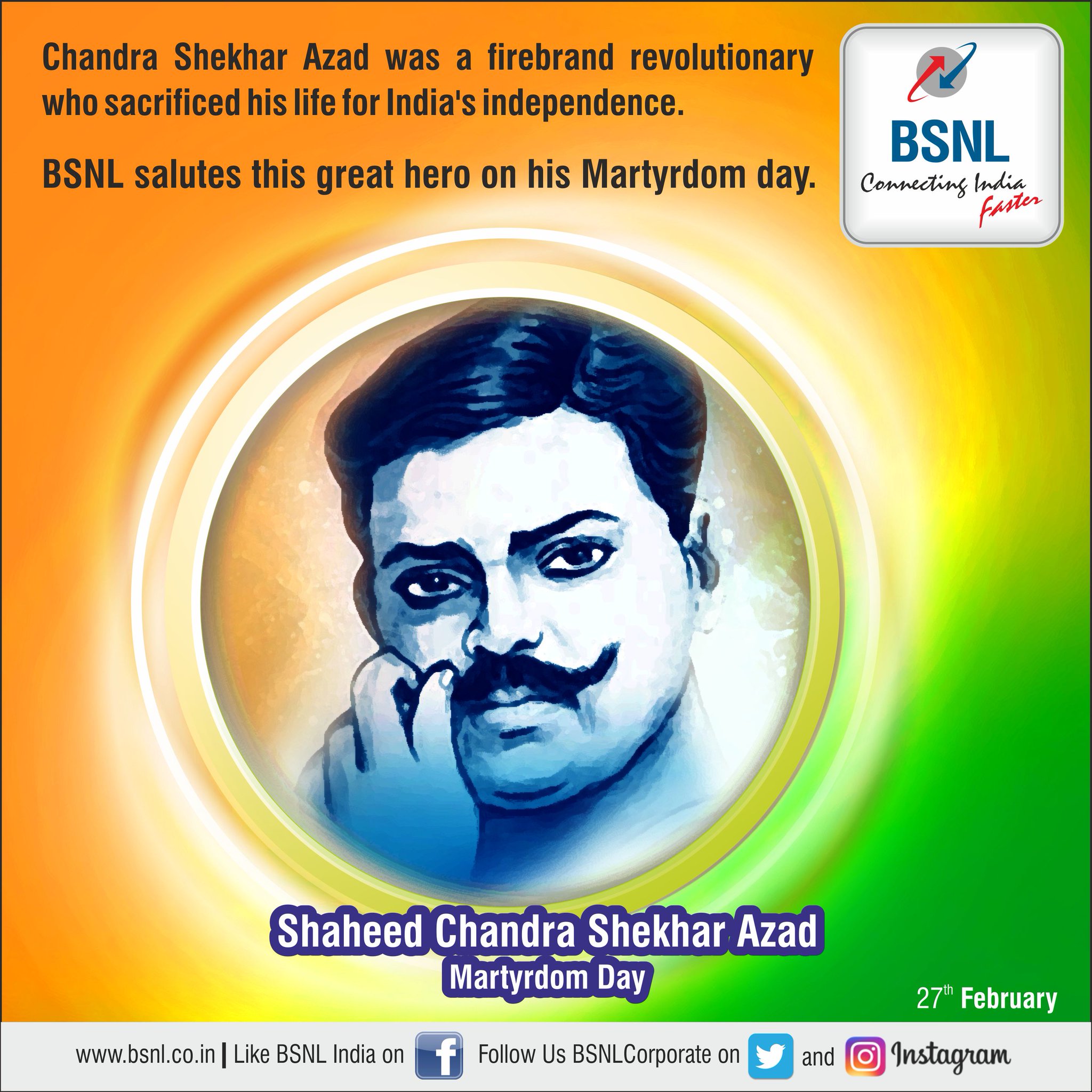 Chandrashekhar Azad 27 Feb / His fierce patriotism and courage inspired others of his generation to enter freedom struggle. Chandrashekhar Azad 27 Feb : When apprehended by the police at age 15 while participating in mohandas k.