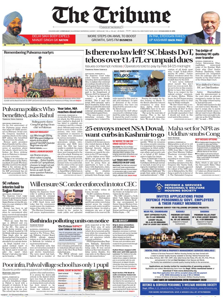 The Tribune Delhi Ncr 15 02 2020 Pdf - Lokendra singh saral director cm helpline.