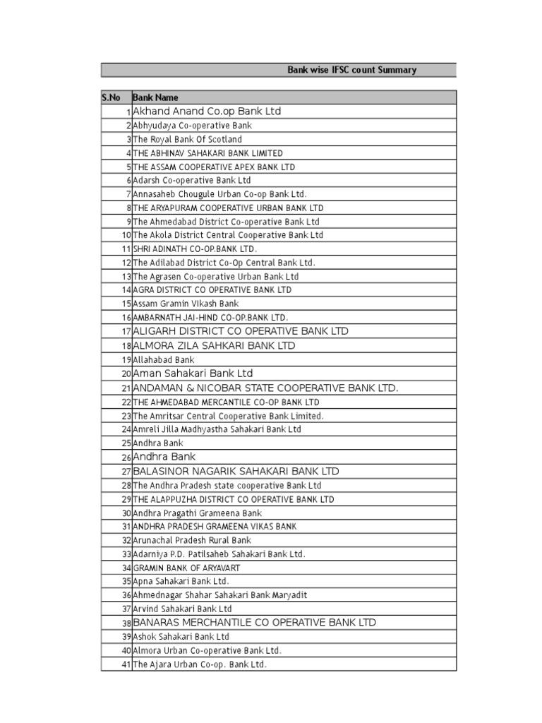 Ifsc Code 1 Xlsx Banks Banking - Last updated 01st jan 2021.