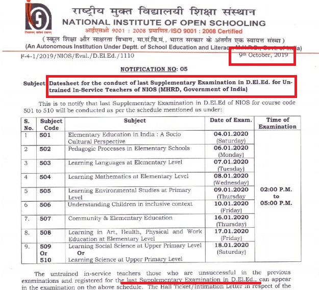Nios Deled Admit Card 2017-19 : For 5th semester also, nios will release the admit card and students can download this admit card online. Nios Deled Admit Card 2017-19 : Scroll down, to know more about nios 10th, 12th admit card.