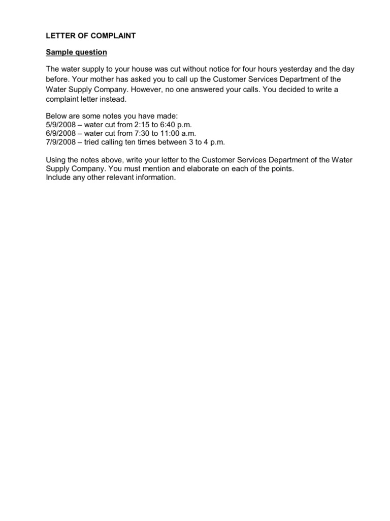 Sample Complaint Letter For Water Supply In English : You don't have to go to a legal counselor or an influencing.